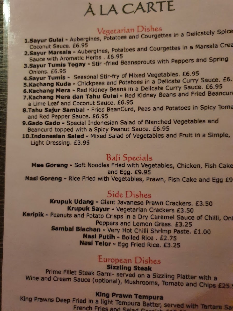 Tucked away just off the Hove seafront, the Bali Brasserie Restaurant, Bar & Live Music Venue Menu delivers an immersive fusion of authentic Southeast Asian flavours and a vibrant entertainment scene. Located at Kingsway Court, First Ave, Hove, this well-established spot has earned a loyal following for blending Indonesian-Malaysian cuisine with a relaxed, yet upscale, dining experience.